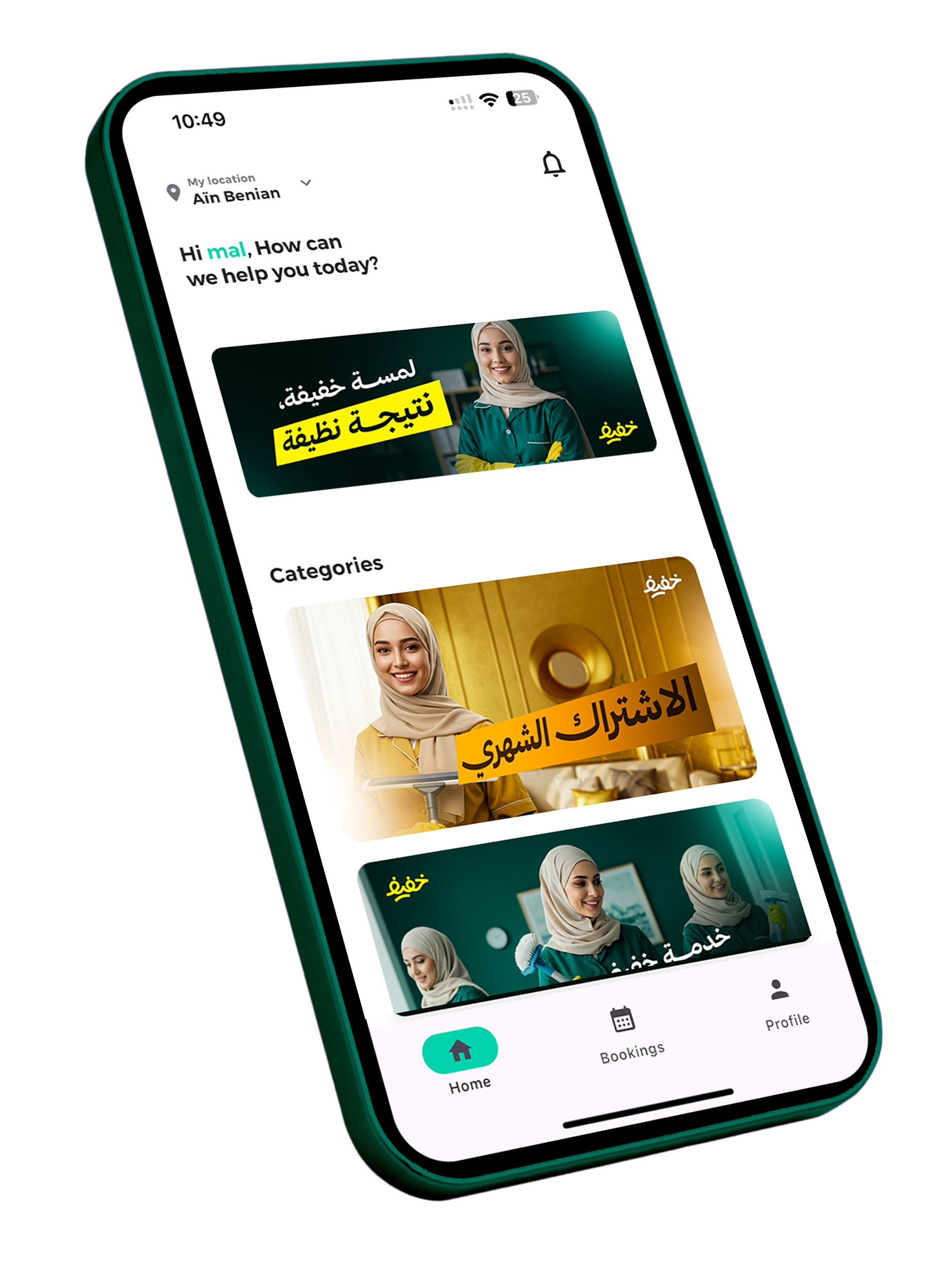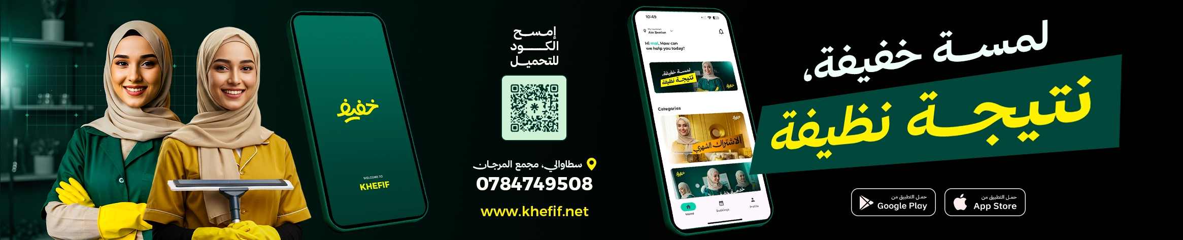 من خلاله يمكن طلب عاملات نظافة محترفات بسهولة واختيار نوع الخدمة والوقت الذي يناسبك بكل مرونـــة، يهدف خفيف إلى جعل تجربة طلب الخدمات المنزلية أسرع وأوضح وأكثر راحة بدون مكالمات أو انتظار طويل كل ما عليك هو فتح التطبيق وتحديد احتياجك ودع الباقي علينا، مع خفيف النظافة أصبحت أبسط مما تتخيل